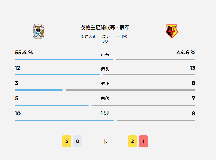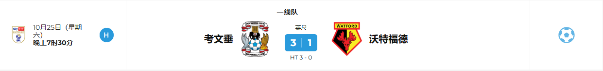 半场:考文垂3-0沃特福德