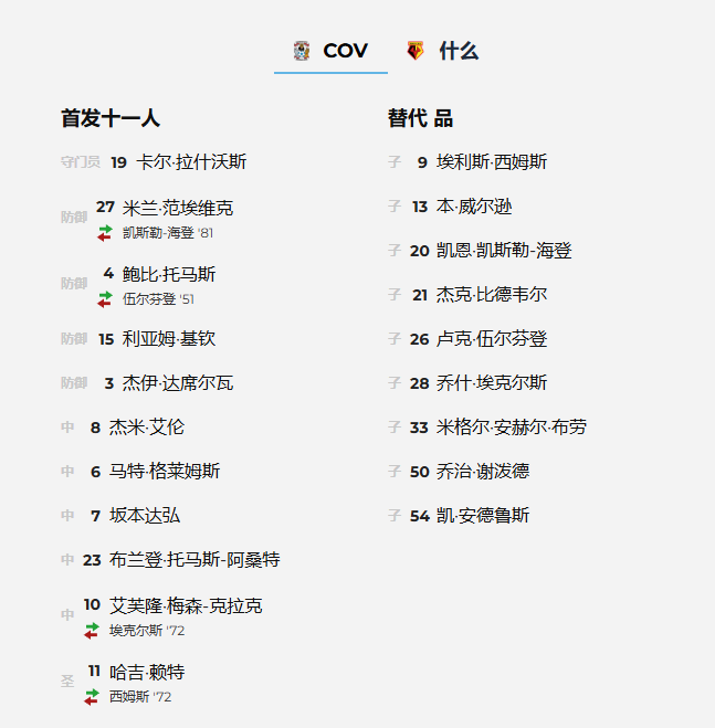 全场:考文垂城 3-1 沃特福德