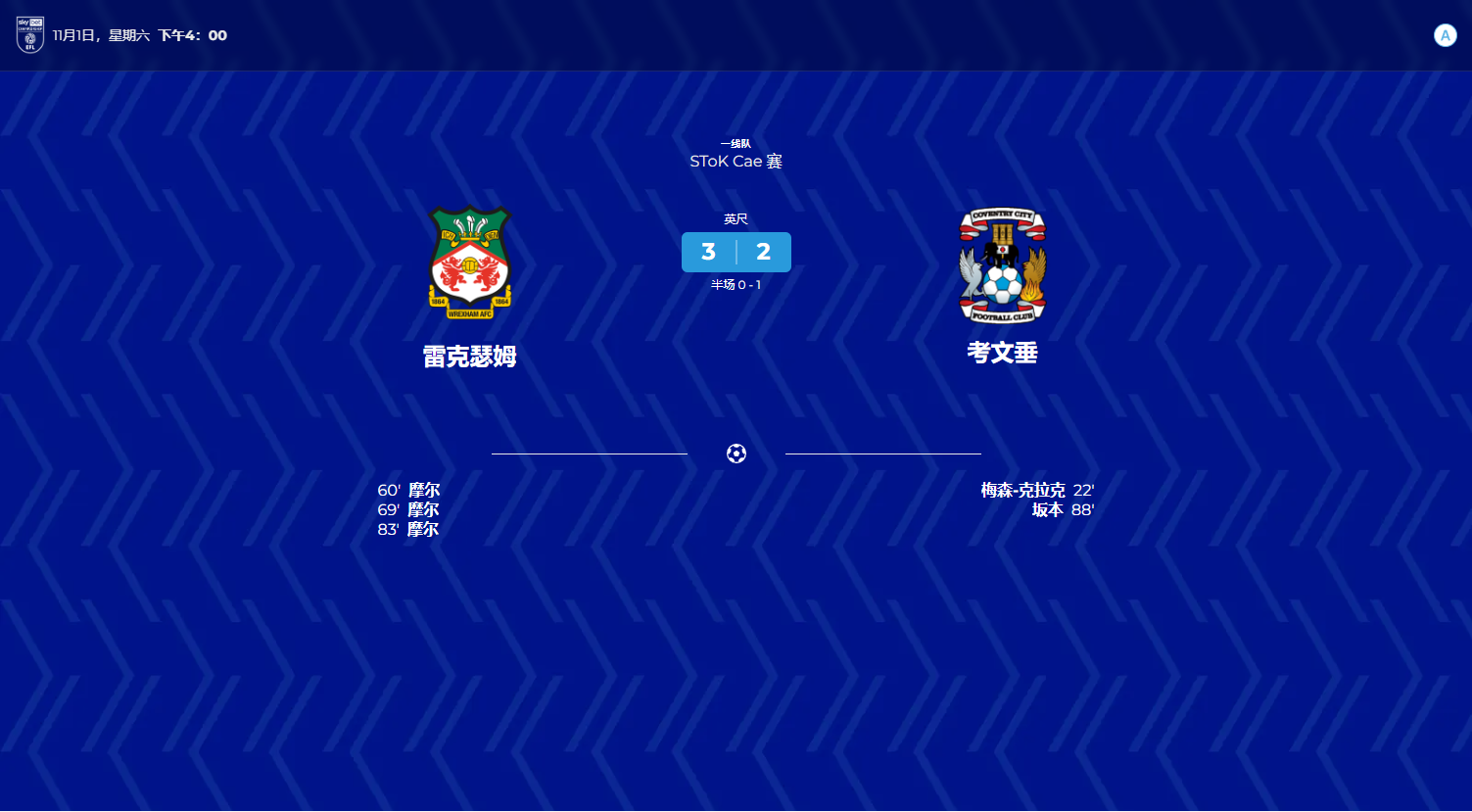 比赛雷克瑟姆 3-2 考文垂城 HSB2025年3月21日2025年11月21日01 mins 文章导航 Previous: 考文垂 3-1 谢菲尔德联Next: 考文垂城 3-1 沃特福德 发表回复 取消回复您的邮箱地址不会被公开。 必填项已用 * 标注评论 * 显示名称 * 邮箱 * 网站 在此浏览器中保存我的显示名称、邮箱地址和网站地址,以便下次评论时使用。